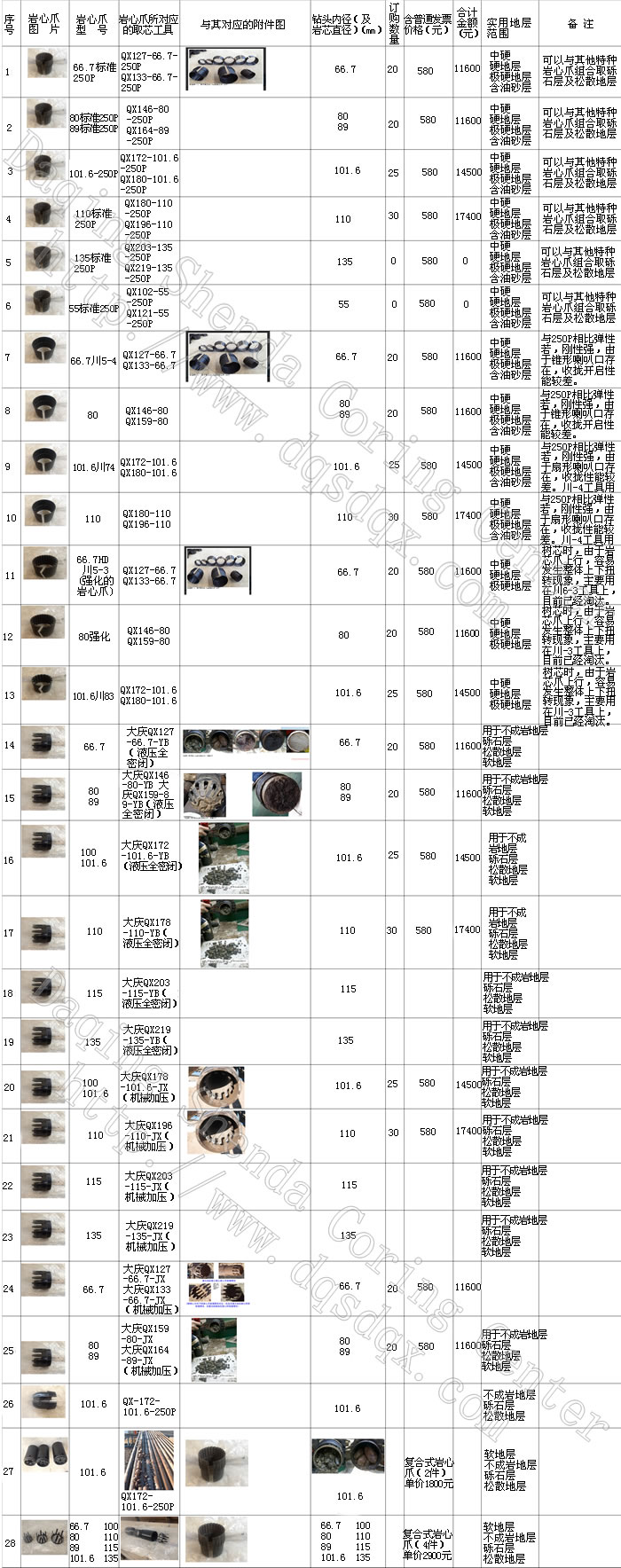 巖芯爪類(lèi)型和規(guī)格